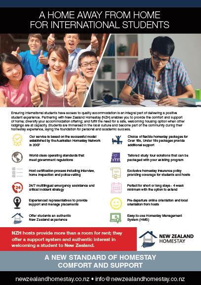 NZH is a partner to schools who need to provide appropriate orientation, support and accommodation for young international students.